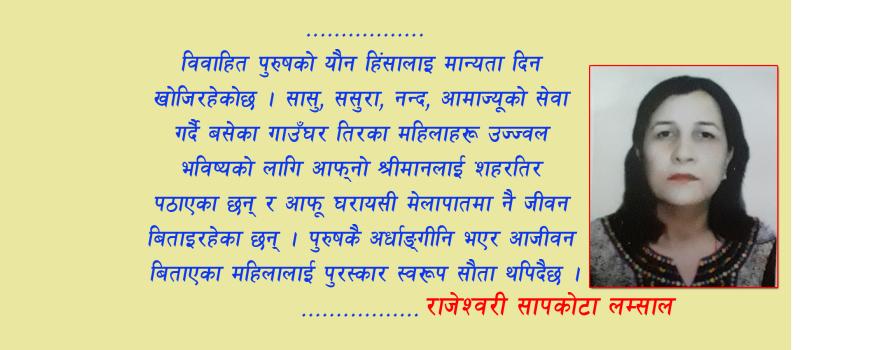 ‘नेपालको कानुन दैवले मात्र जानुन्’ वा त्यही उच्च ओहदामा बसेका विद्हरूले मात्र जानुन् । अहिले नेपालमा यहि कुरा चरितार्थ भएको छ । वि.सं १९१० मा जङ्गबहादुर युरोप यात्राबाट फर्केपछि नेपाललाई केही प्रगतिको दिशातिर अग्रसर गराउनका लागि मुलुकी ऐनको निर्माण गर्न लगाए । उनले राणाशासनको हुकुमी कानुनलाई केहि मा ...