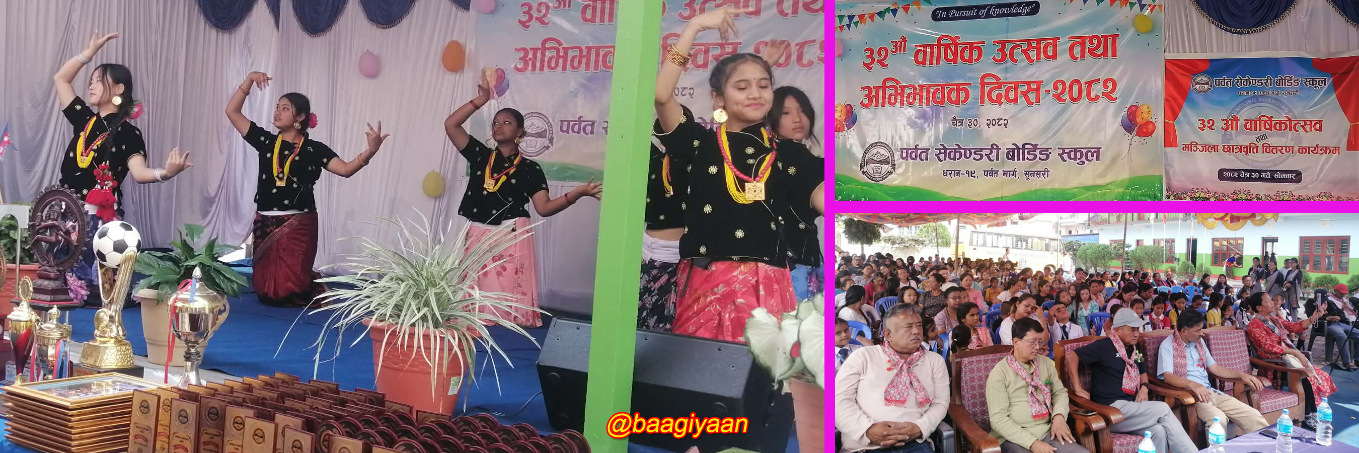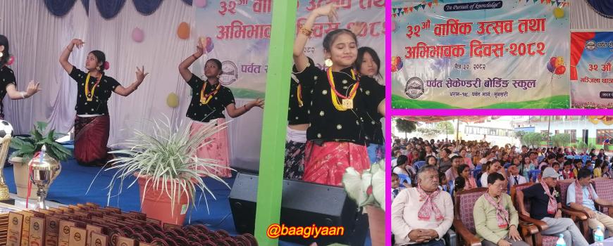 धरान, चैत्र ३० गते । धरान चौकीबारीस्थित पर्वत सेकण्डरी बोर्डिङ स्कुलले सोमबार ३२ औँ वार्षिक उत्सव मनाएको छ । सो अवसरमा अभिभावक दिवस अन्तर्गत विभिन्न कार्यक्रम आयोजना गरिएको थियो । स्कुलका प्ले ग्रुप देखि ९ सम्मका परिक्षामा उत्कृष्ट अङ्क ल्यायर प्रथम, दोस्रो र तेस्रो हुने विधार्थीहरुलाई स्कुलका ...